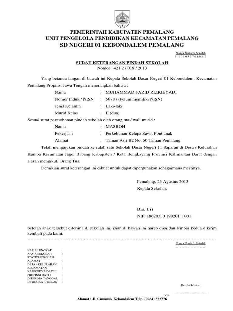 Sy nak contoh surat rasmi surat sokongan untuk suami pindah dari kem kuching ke kem kelantan di sebabkan bapa mertua suami tidak sihat dan isteri masih sambung belajar.harap admin boleh. Contoh Surat Keterangan Pindah Sekolah Smp